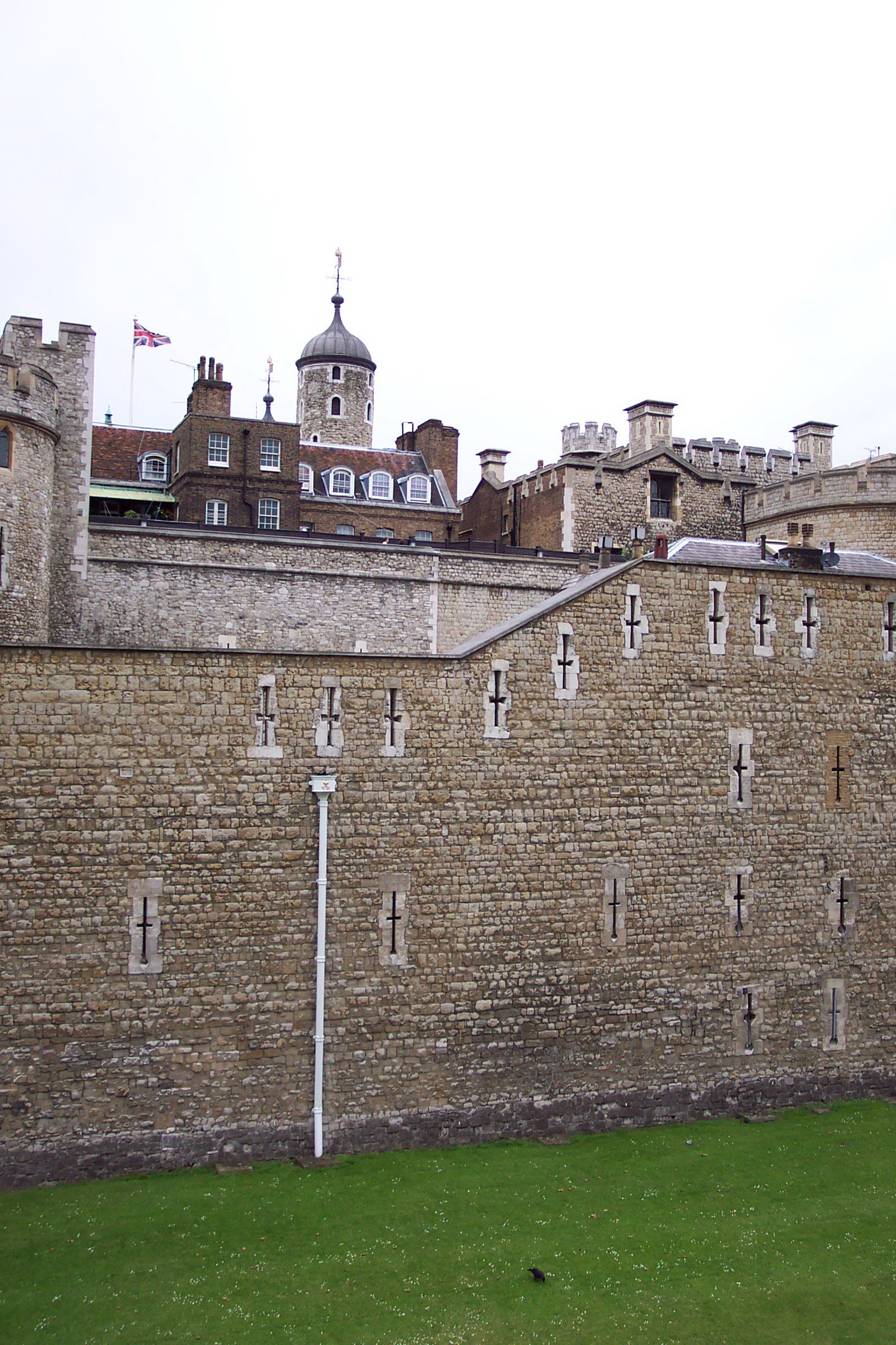 Tower of London. The Grassy area was once the moat, a considerable about of it has been filled in, it used to be much deeper